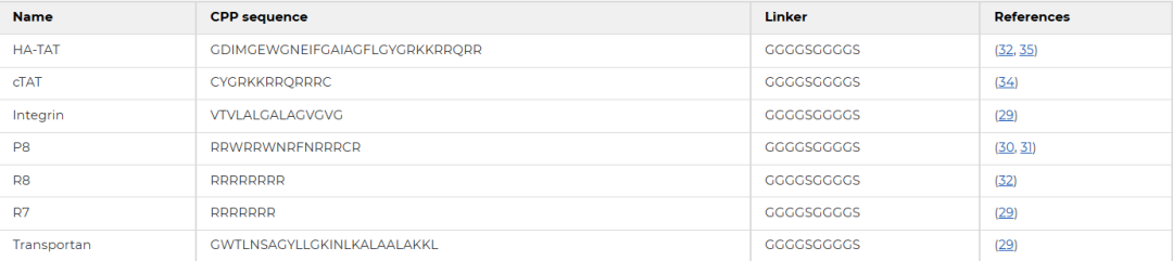 Table 1 Amino acid sequence information of CPPs